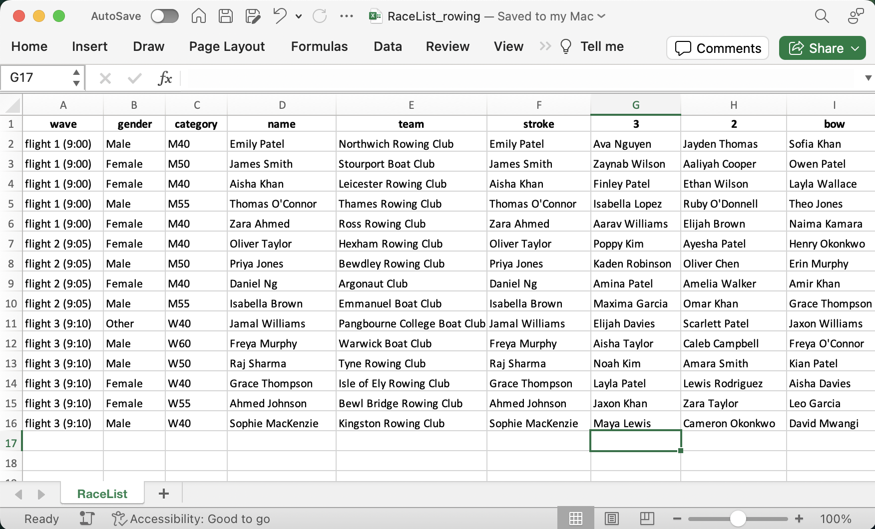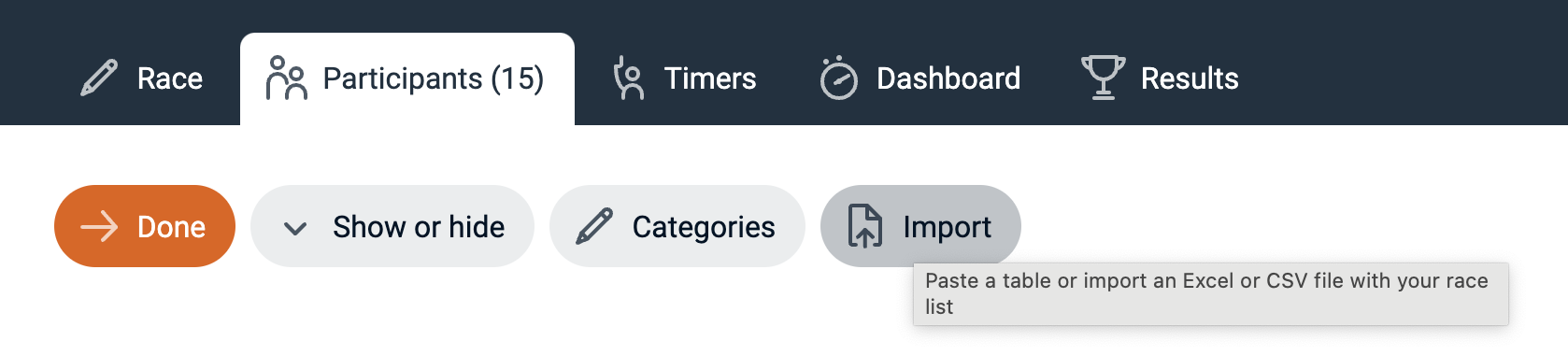 A CSV file is simply a data table in text format where each line represents a race participant and each column an attribute of your race participants. Most race management software supports the export of such a file. When you're using Excel you can drop the Excel file itself (only the first worksheet is imported).
