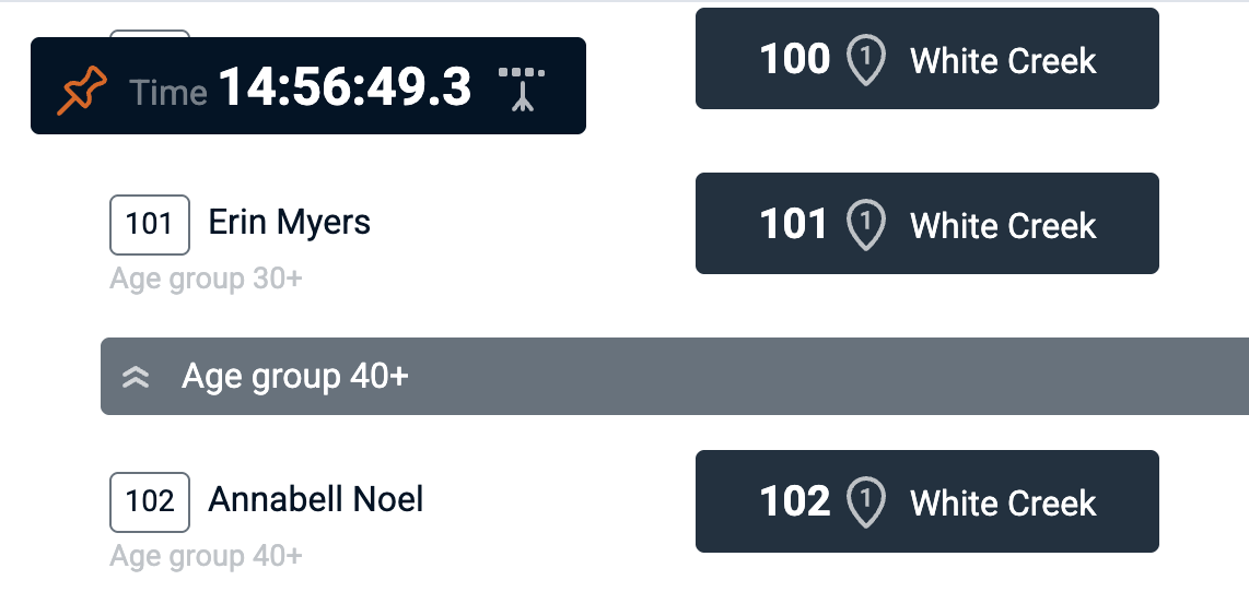 Results can be viewed in groups, depending on the race settings. When a race is started in waves and includes several categories accross those waves, the results can be displayed both by wave, or be category, or as a flat list - with the overall fastest participant at the top. When the gender field is enabled, results can also be grouped accordingly.