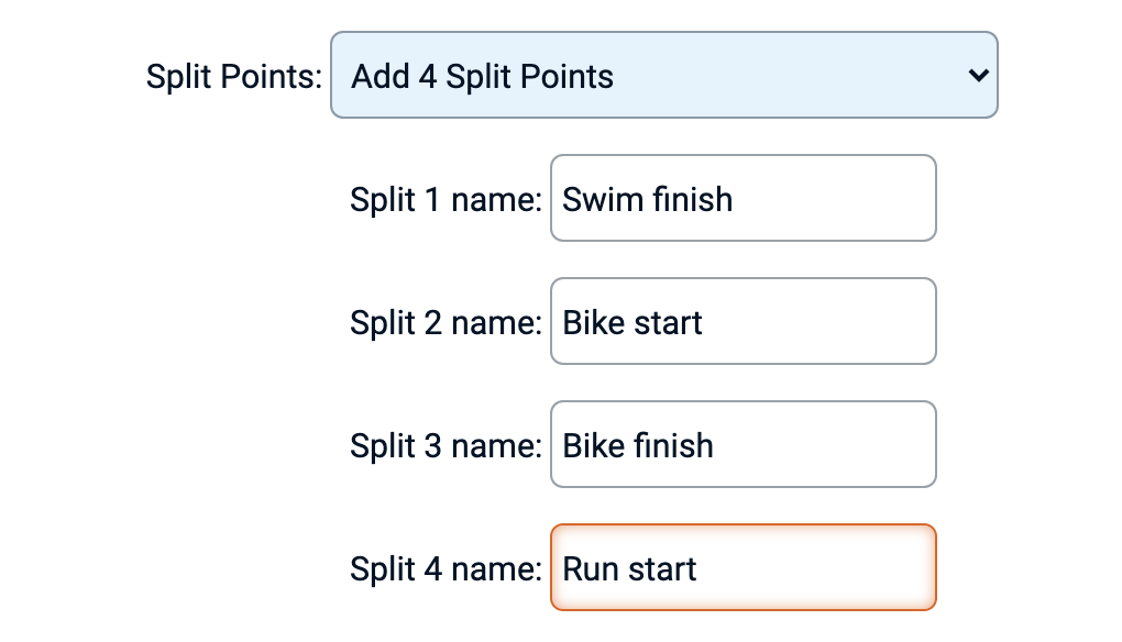 Split points provide great data and feedback to both participants as well as to live spectators. Race participants can review their efforts in more detail and the race audience can see how a race unfolds in real time. Split points can be custom named.